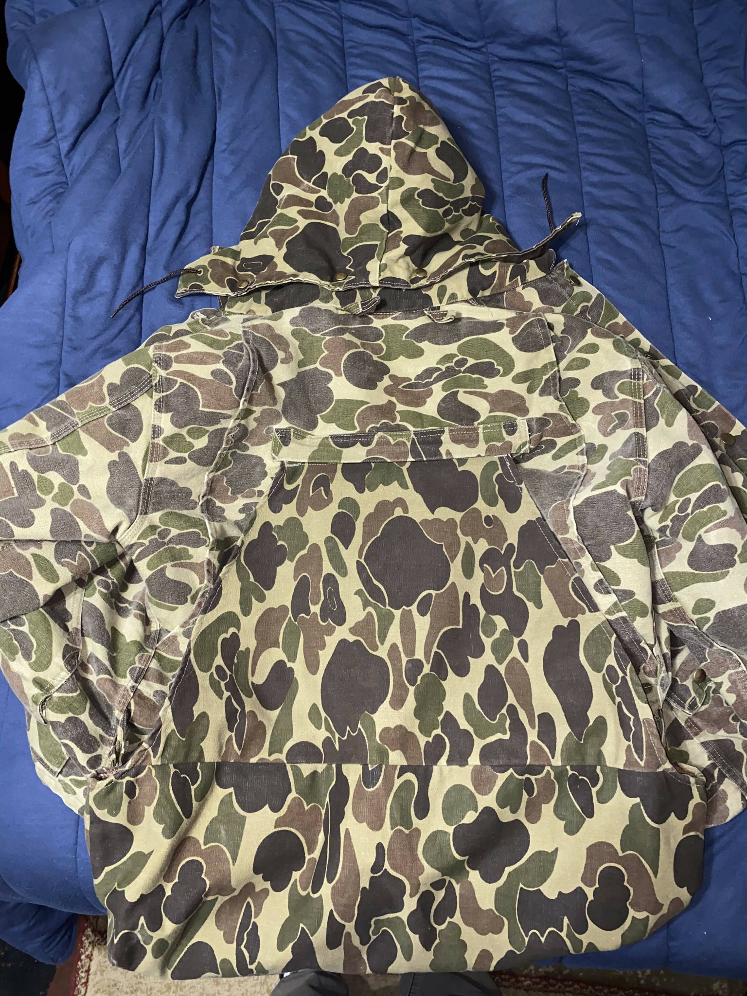 Super Clean 80s carhartt camo hunting jacket It’s almost like it came new from the store Non smoking Comes with removable hood and game pouch, it’s hard to find the full set like this Zippers and buttons are all perfect Size large |