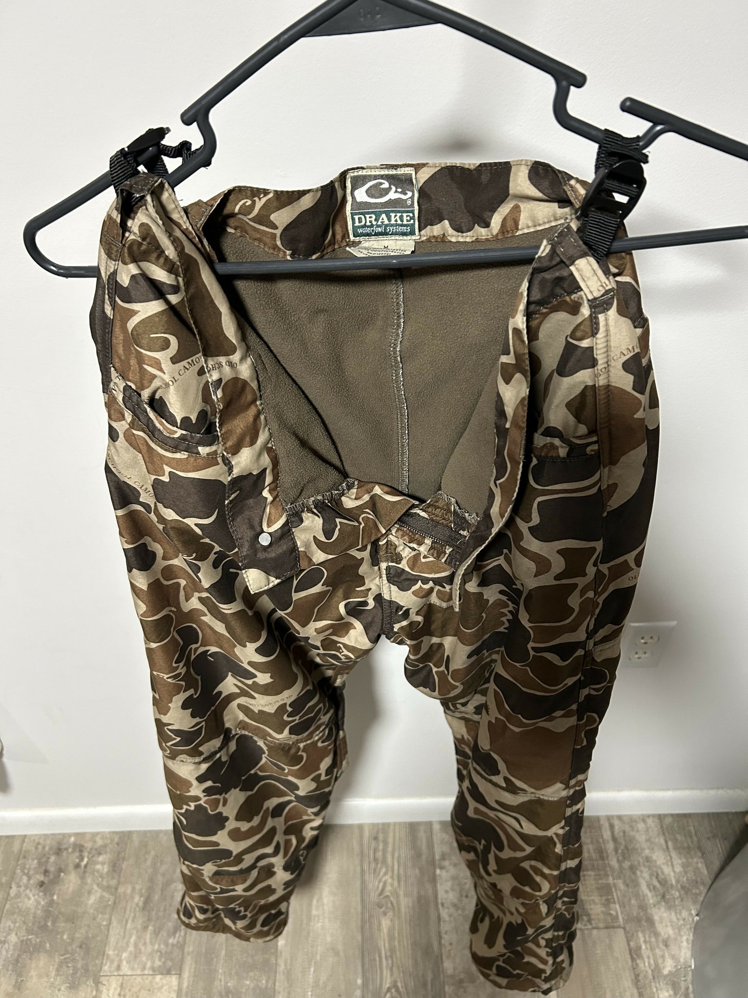 Drake waterfowl fleece lined pants , “old school” camo , adjustable waist size medium