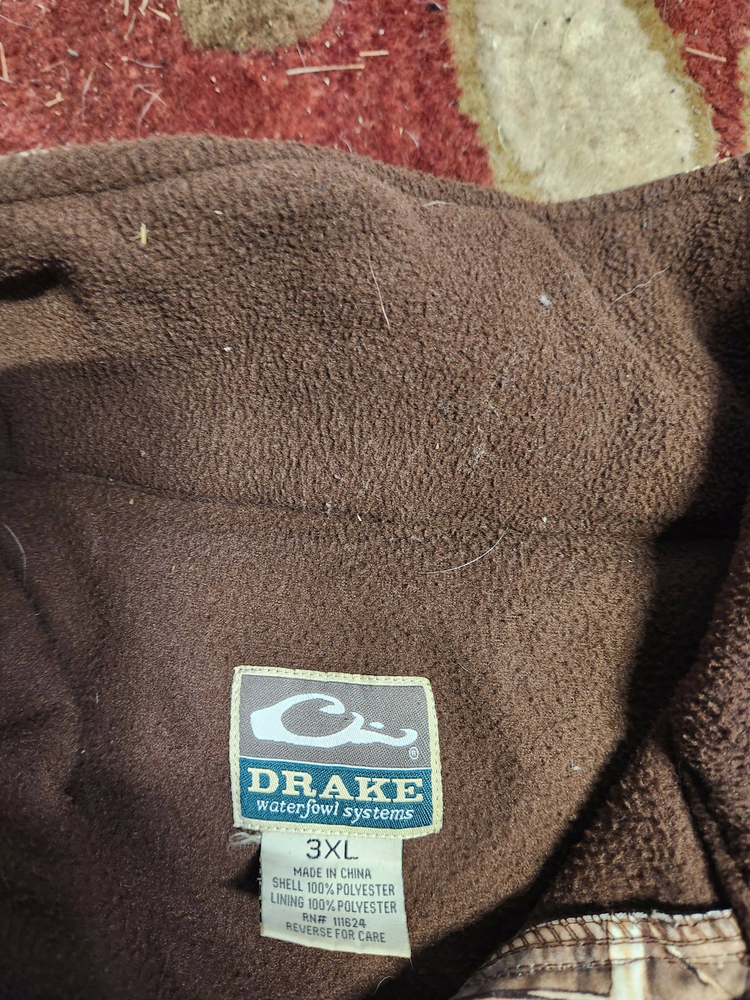 Drake max 4 full zip jacket that has 1/2 fleec on the bottom and 1/2 waterproof jacket on the top half. This jacket is great for the duck blind or the mall!!
