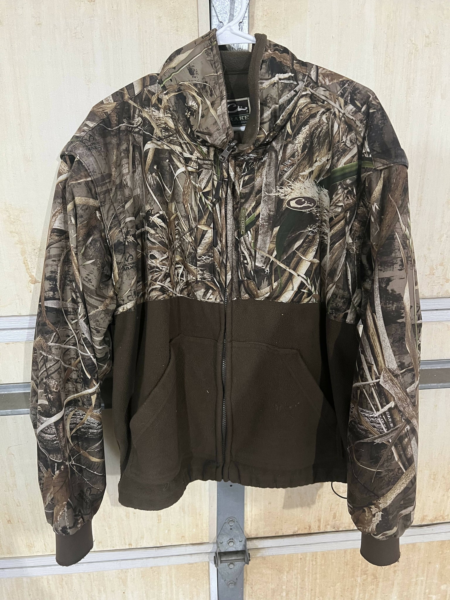 Men’s Large 3 in 1 waterfowl jacket. In great condition selling to hopefully go to someone for more use as my husband purchased a different jacket. No rips or tears features outer jacket as well as inner fleece lined jacket that can be attached and worn with outer jacket or removed. Keeps you dry/very warm in rainy cold weather conditions. Outer jacket has 10 pocket while inner fleece lined jacket has 4.