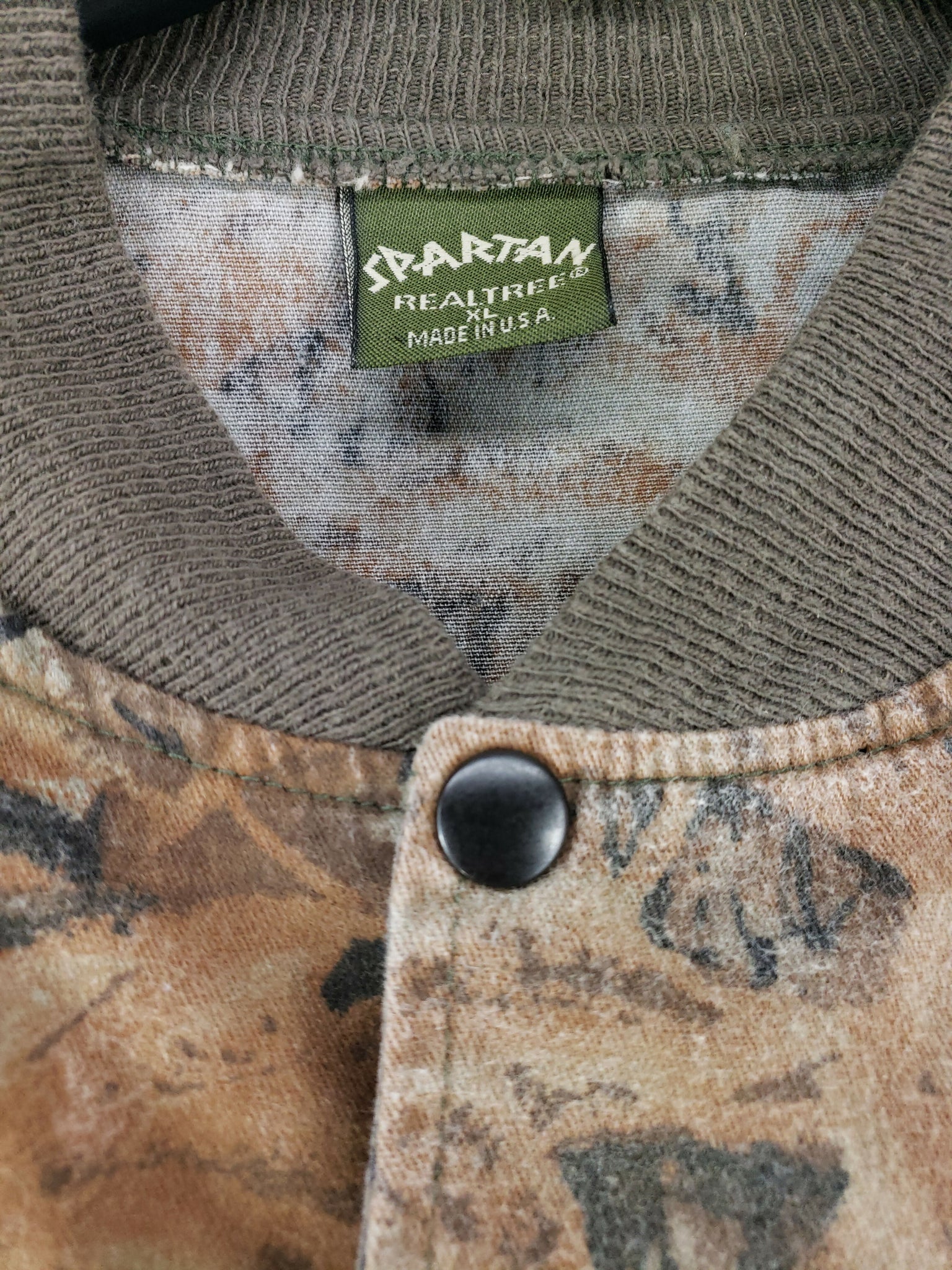 Stay hidden and stylish with this vintage Spartan Realtree camouflage jacket. Perfect for outdoor adventures, it's designed for durability and comfort. (Y)ย