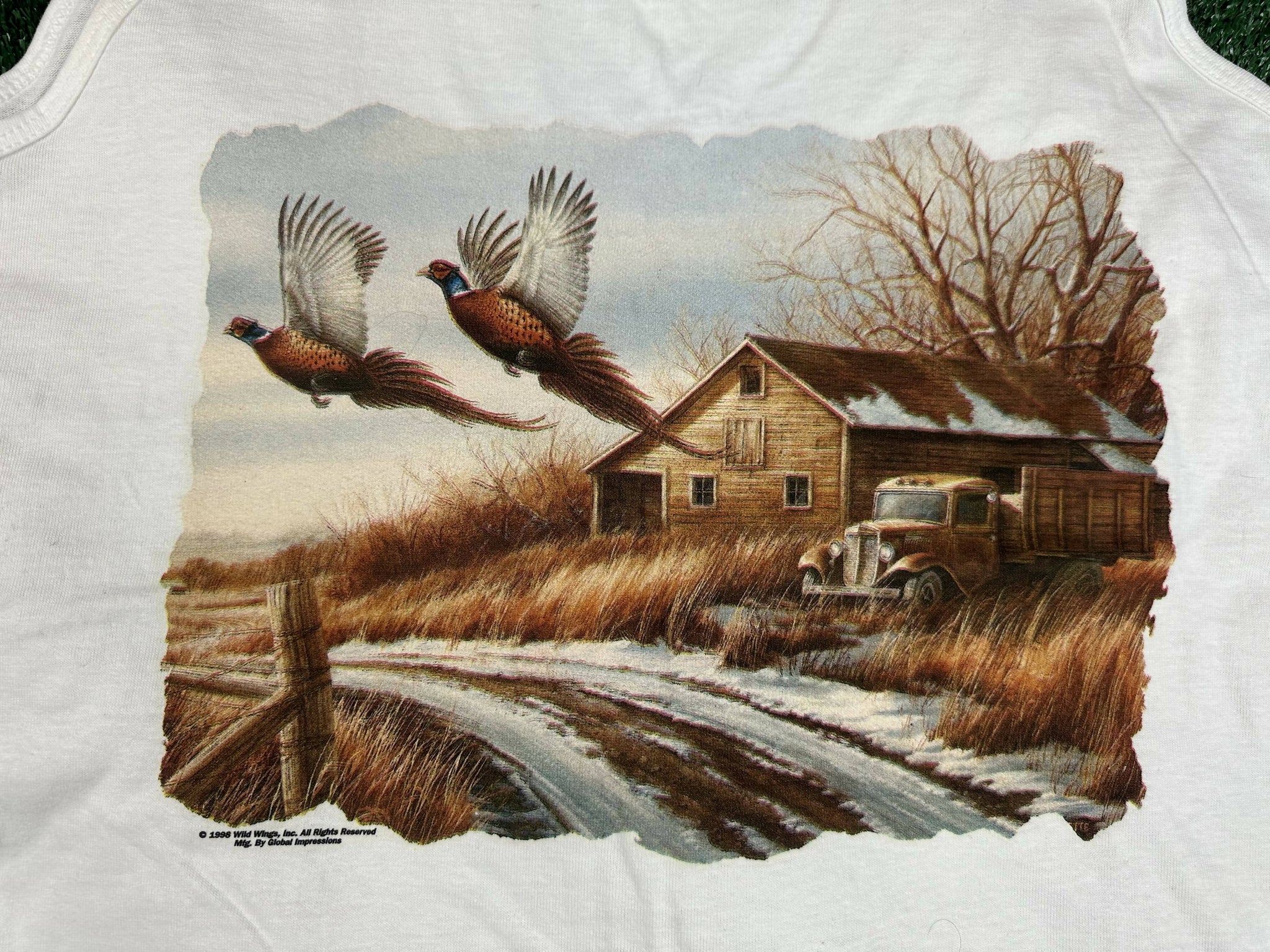 Vintage Winter Cabin Pheasants Scene Tank Top