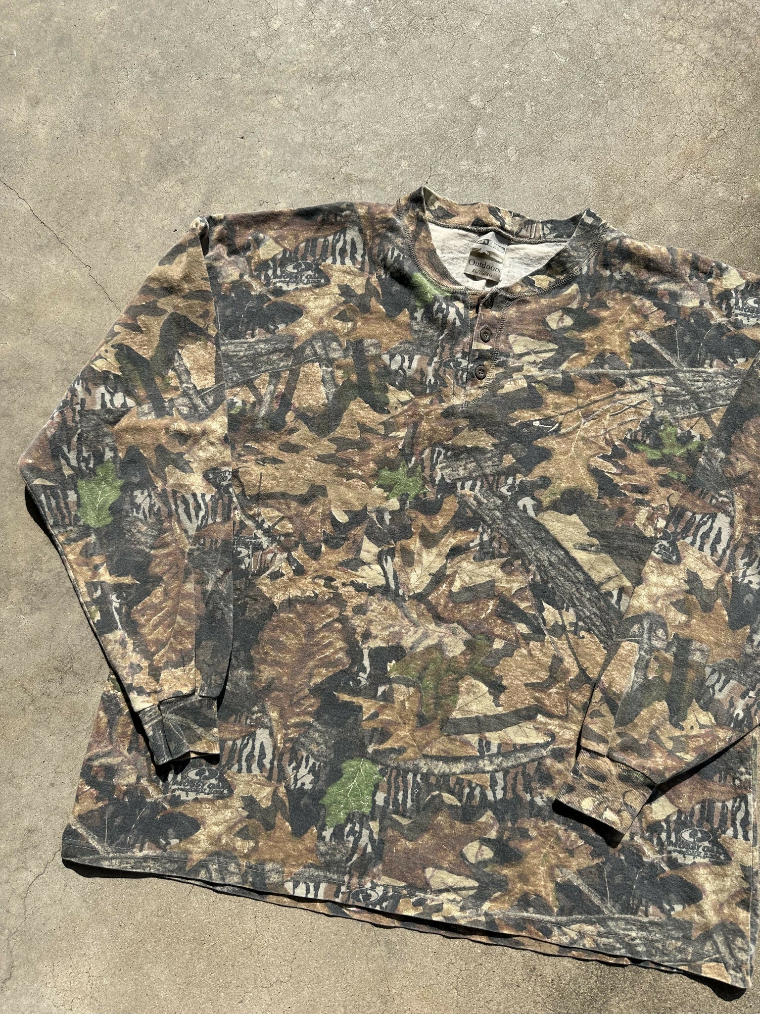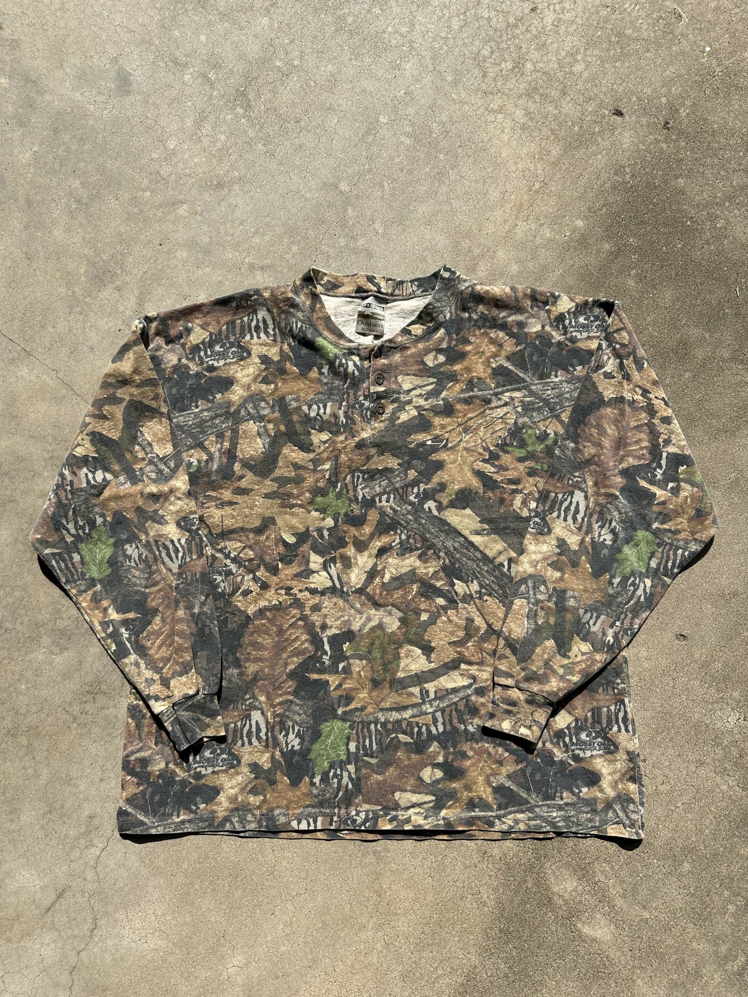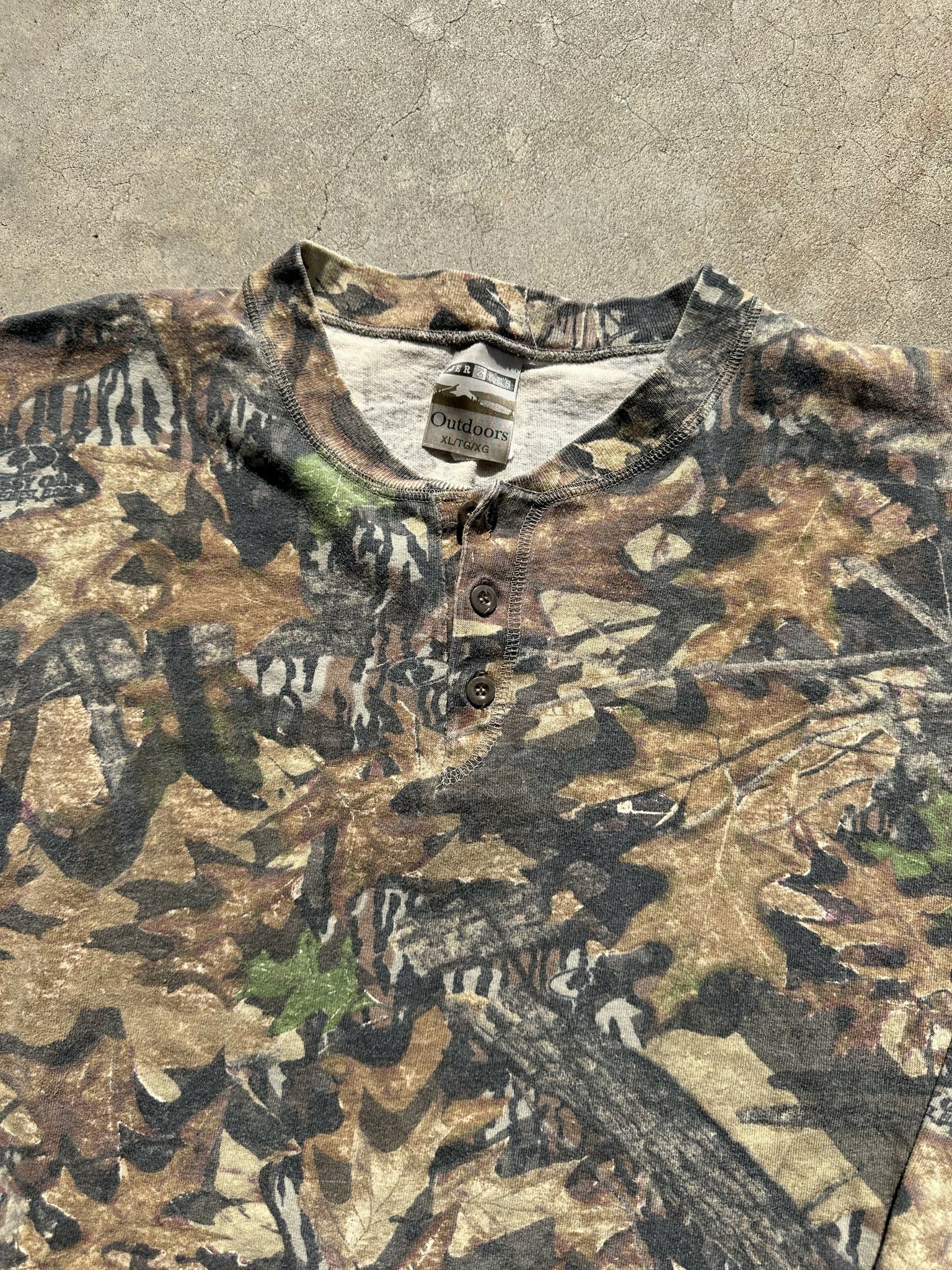 Vintage Jerzees Mossy Oak Forrest Floor Thick Henley T-Shirt (XL)