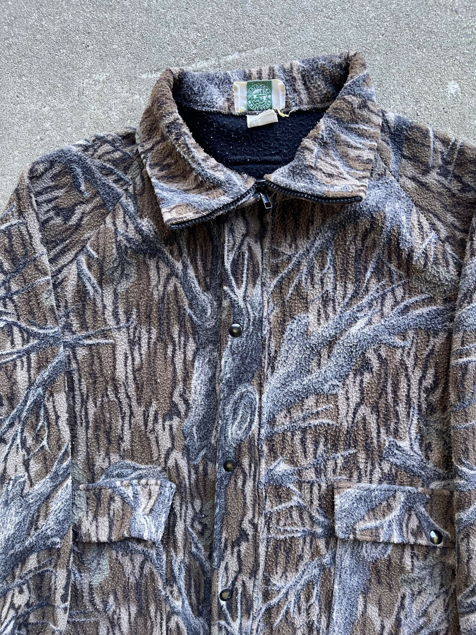 Vintage Whitewater Outdoors Mossy Oak Treestand Camo Fleece Jacket (L/XL)